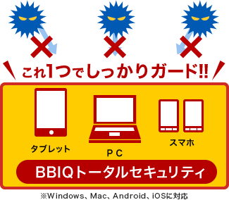 BBIQではパソコン・スマホ・タブレットのセキュリティが5台まで無料で利用できます!※ご利用には登録が必要です。 *必須 |